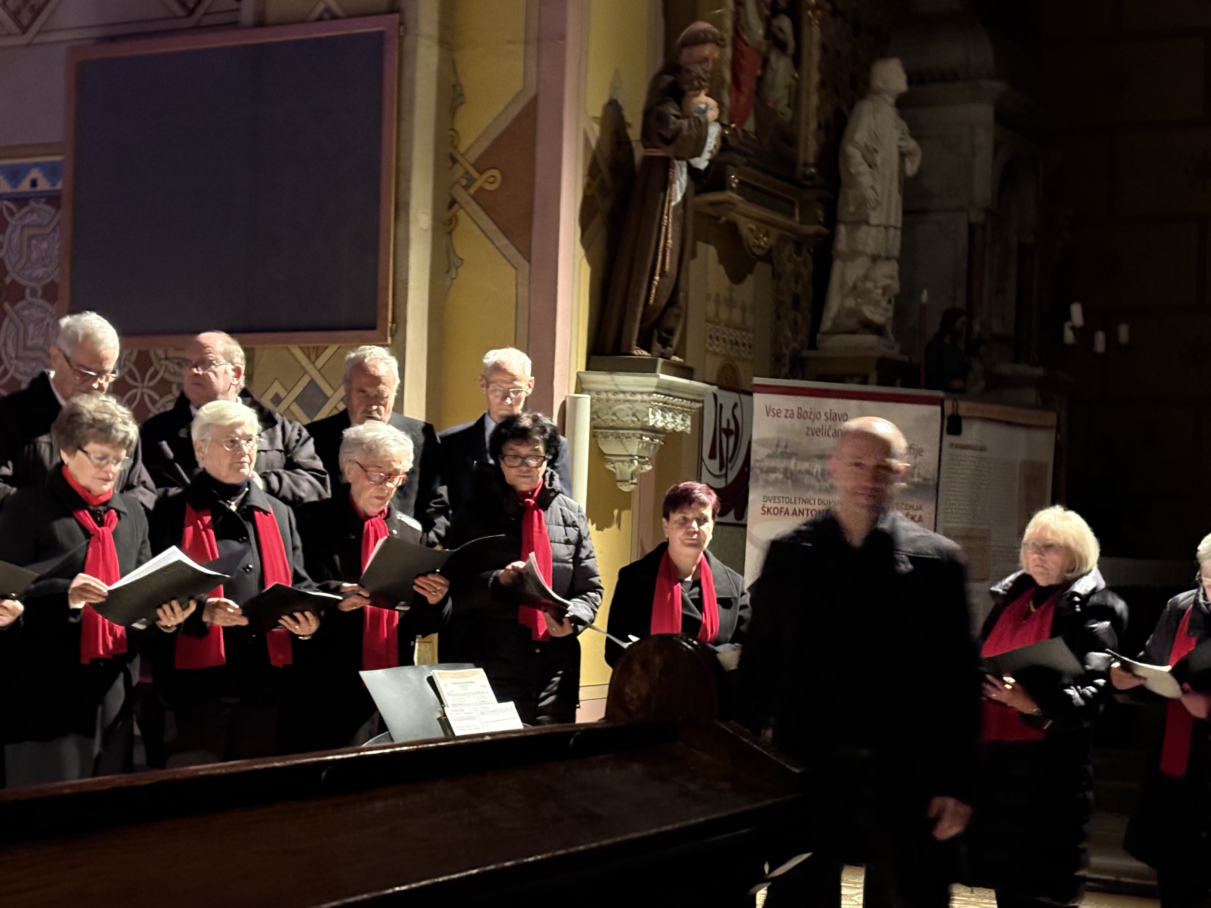 Program pesmi je bil raznolik, posvečen sveti Ceciliji in svetemu letu, zato je zazvenela tudi himna Romarji upanja in na koncu Pesem sužnjev ob čudoviti orgelski spremljavi dirigenta Tomaža Marčiča. Kot gost je z igranjem na trobento nastopil Erik Brezovšek, ki trenutno končuje magisterij na Umetniški univerzi v Gradcu, redno igra v Filharmoniji v Salzburgu in poučuje na Glasbeni šoli na Koroškem v Avstriji.Milena Jurgec